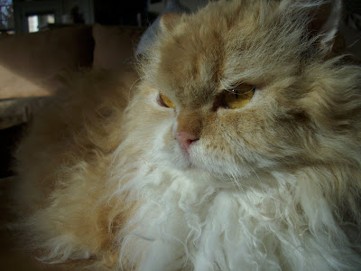 I cannot believe what has been going on around here. After bringing Emma to the vet for feeling sick, the next day Quincy and Mocha became ill (vomiting, diarrhea) and ended up bringing both to the vet on Saturday. They weren't really sure what caused the illness but their basic vitals were fine and they sent Quincy home with medication and decided to give Mocha a steroid shot since she had previous IBD issues. Well, Mocha has been a total zombie after yesterday. Very lethargic, almost depressed looking. She's been drinking and only will eat her fish flakes and nothing else. Quincy and Emma are doing fine now. I am beside myself about Mocha and am hoping it's something as simple as a reaction to the steroid shot. I was so hesitant on the doctor giving her the steroid shot but I agreed. *sigh* Mocha is 13 1/2, not a young one anymore, I realize that, but I am hoping she pulls through this.